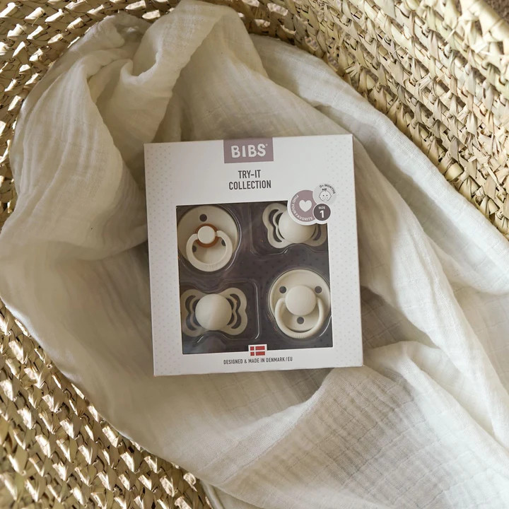 A tökéletes cumi megtalálásához legjobb, ha több formát és méretet tesztelsz. Ebben lesz segítségedre a BIBS Try-it csomagja, mely 4 darab, különböző cumit tartalmaz 0-6 hónapos kor között. A szettben találsz 1 darab BIBS Colour (natúr kaucsuk), 1 darab BIBS Couture (natúr kaucsuk), 1 darab BIBS Supreme (szilikon) és 1 darab BIBS De Lux (szilikon) cumit.