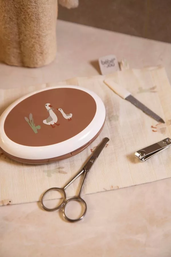 A Bébé-Jou baba manikűr szett segít, hogy a körömvágás gyors, biztonságos és stresszmentes legyen már a születéstől. A lekerekített végű olló, a körömcsipesz és a finom reszelő kialakítása a legkisebb ujjakhoz is tökéletesen passzol. A kompakt tokban mindig kéznél van, tisztán tartható, és akár a pelenkázótáskába is könnyedén befér.