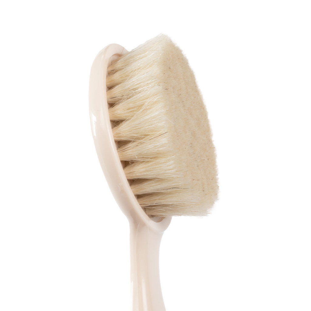A természetes, selymes rostokból készült extra puha sörték kifejezetten a baba érzékeny fejbőrére lettek tervezve, így kíméletesek és kellemes érzetet biztosítanak.