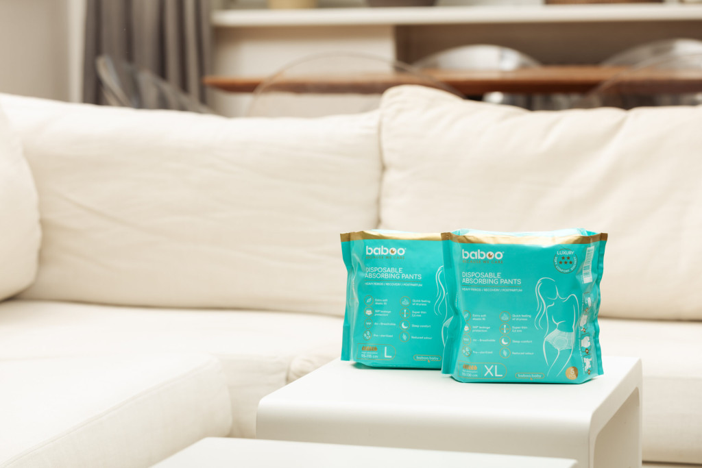 A Baboo® Eldobható Nedvszívó Fehérnemű kifejezetten erős vérzéshez vagy szülés utáni felépüléshez készült. Gyorsan elnyeli a nedvességet, így egész nap száraz és kényelmes érzetet biztosít.