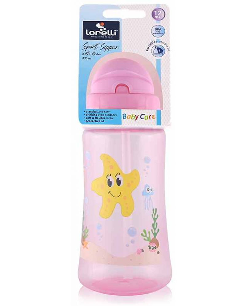 Baby Care Ocean szívószálas sportitató 330 ml - pink