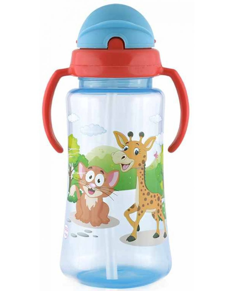 Baby Care Szafari szívószálas sportitató 330 ml - blue