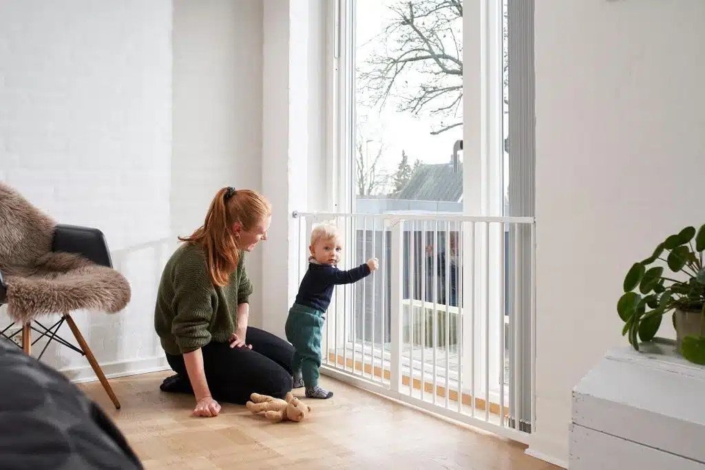 A Baby Dan Asta extra széles védőrács 151 cm széles és önfeszítő rendszerrel rögzül, így segítségével könnyedén biztosíthatsz nagyon széles átjárókat, vagy akár folyosókat. Nagy előnye, hogy rögzítéshez nem kell kifúrni sem a falat, sem az ajtófélfát.