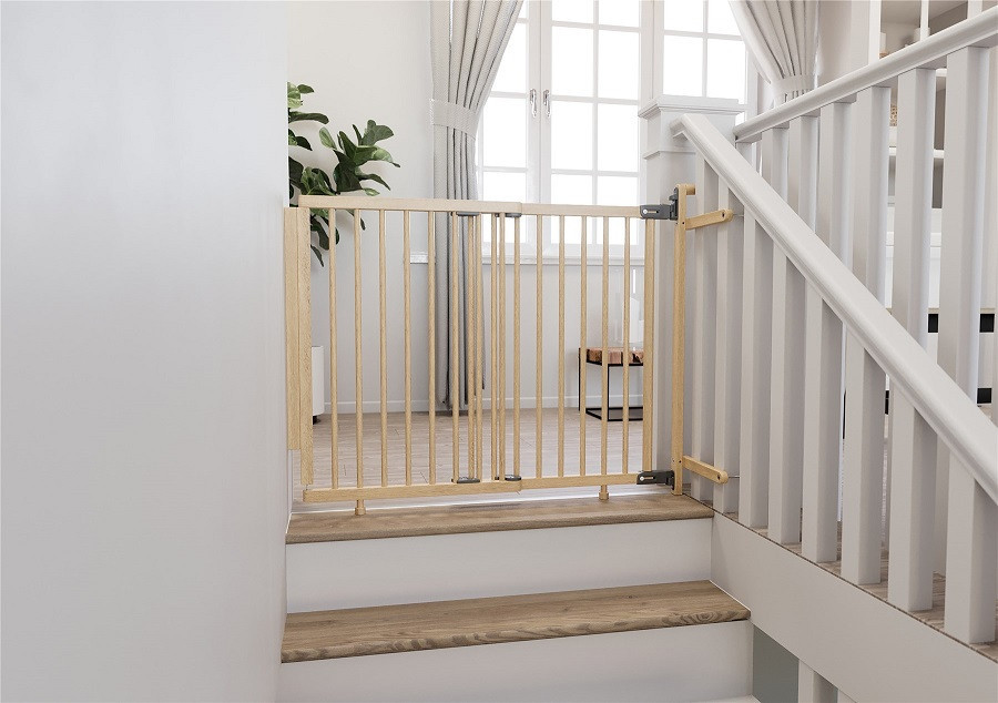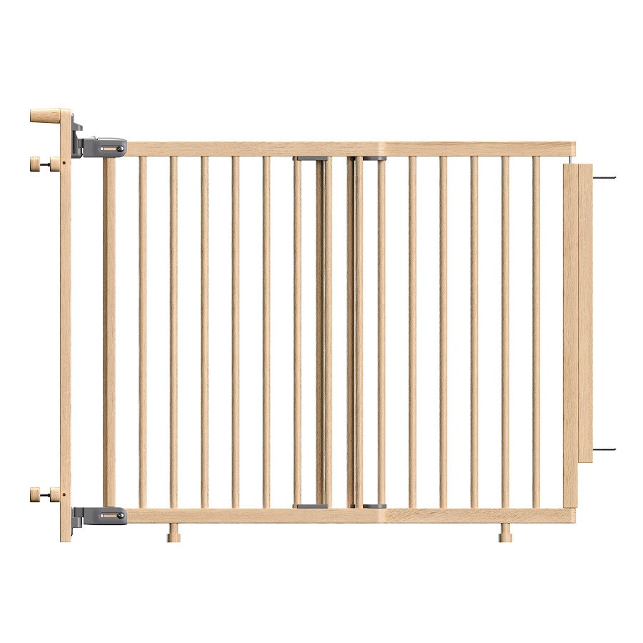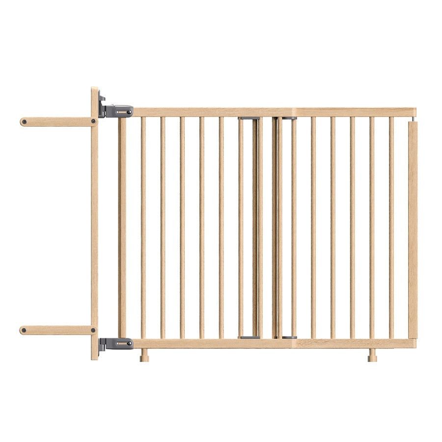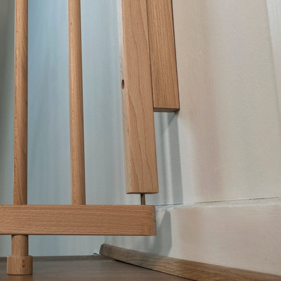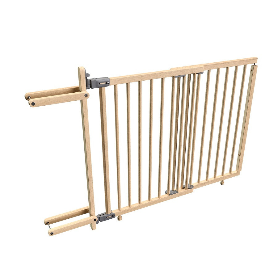 Ez a speciális lépcsőrács úgy lett kialakítva, hogy minden 74,5–114 cm széles nyíláshoz illeszkedjen, és szükség esetén ferde szögben is felszerelhető legyen. Az innovatív rögzítő az oszlopokat biztonságosan körbeveszi, míg a másik oldalt csavarokkal a falhoz lehet rögzíteni. A forgatható tartókonzolok lehetővé teszik az ajtó íves falakhoz vagy ferde falhoz történő alkalmazkodását.
