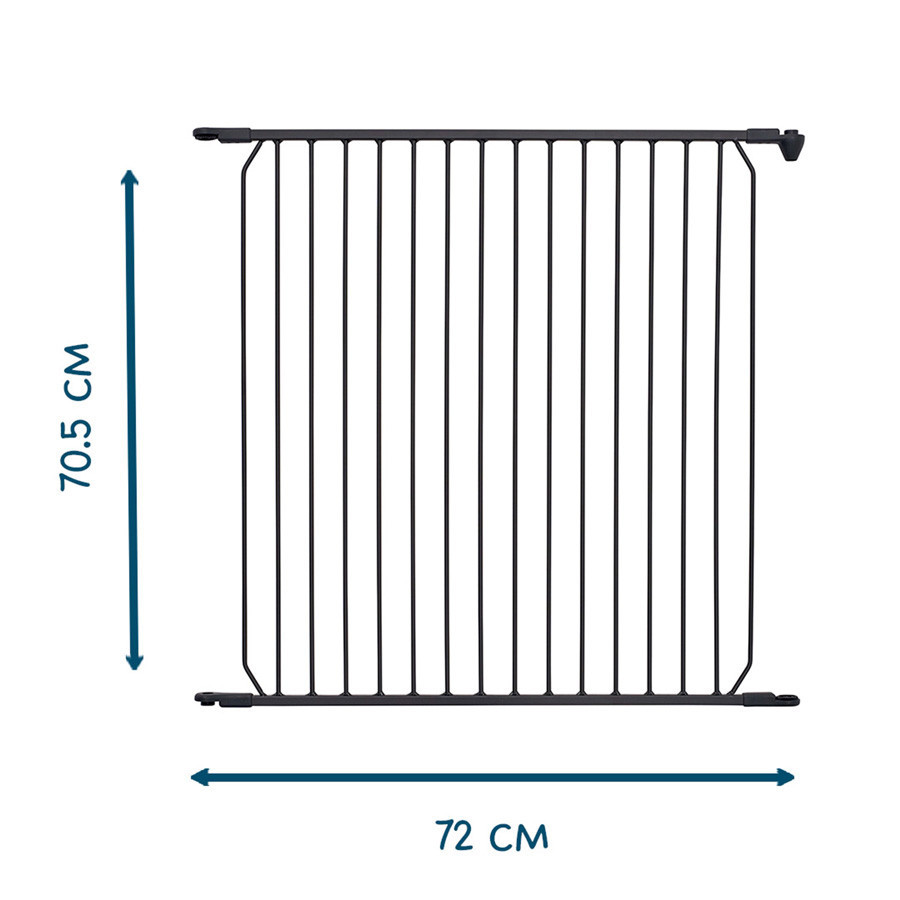 A BabyDan 72 cm-es toldalék segítségével egyszerűen bővítheted a BabyDan CombiFit vagy BabyDan Carl biztonsági rácsot. Ez ideális széles vagy szabálytalan ajtók, lépcsők, kandallók védelméhez, illetve ha a rácsot térelválasztóként szeretnéd használni.