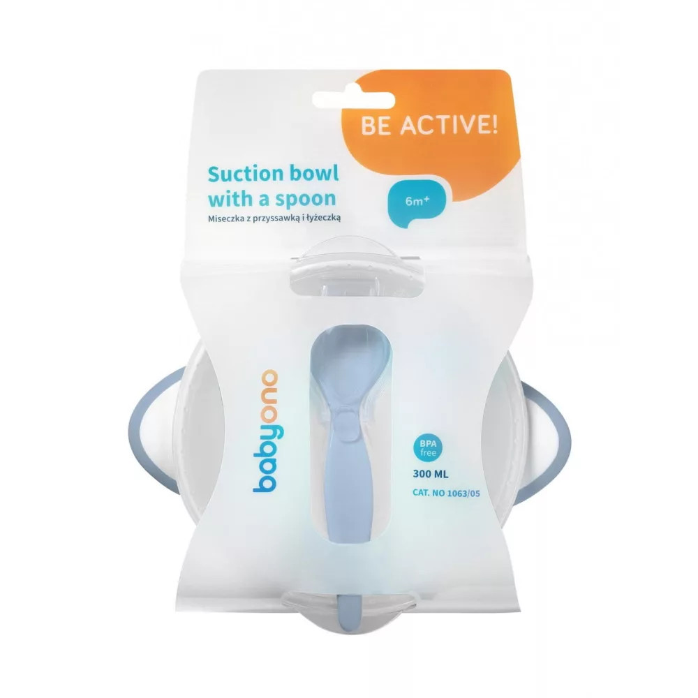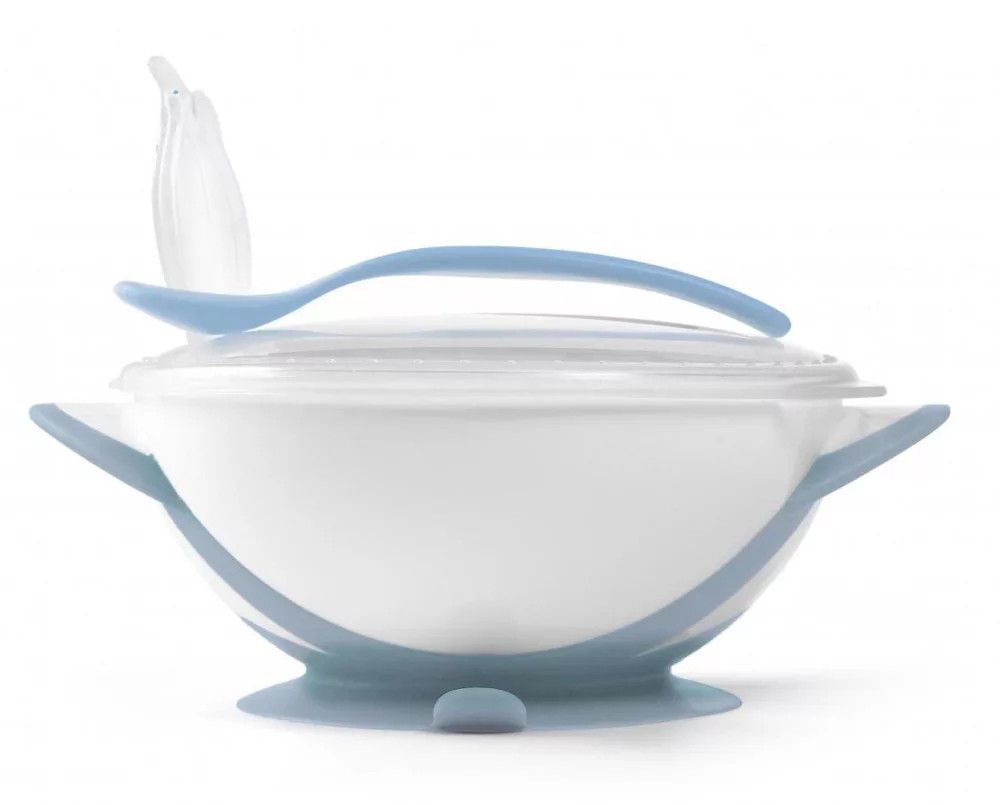 BabyOno Tányér, tapadó aljú, fedeles, kanállal, kék, 1063/05
