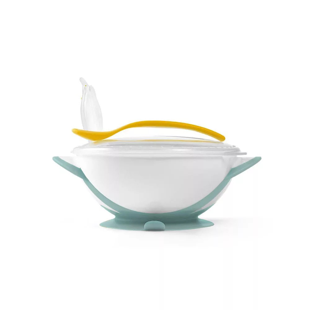 BabyOno Tányér, tapadó aljú, fedeles, kanállal, zöld, 1063/04