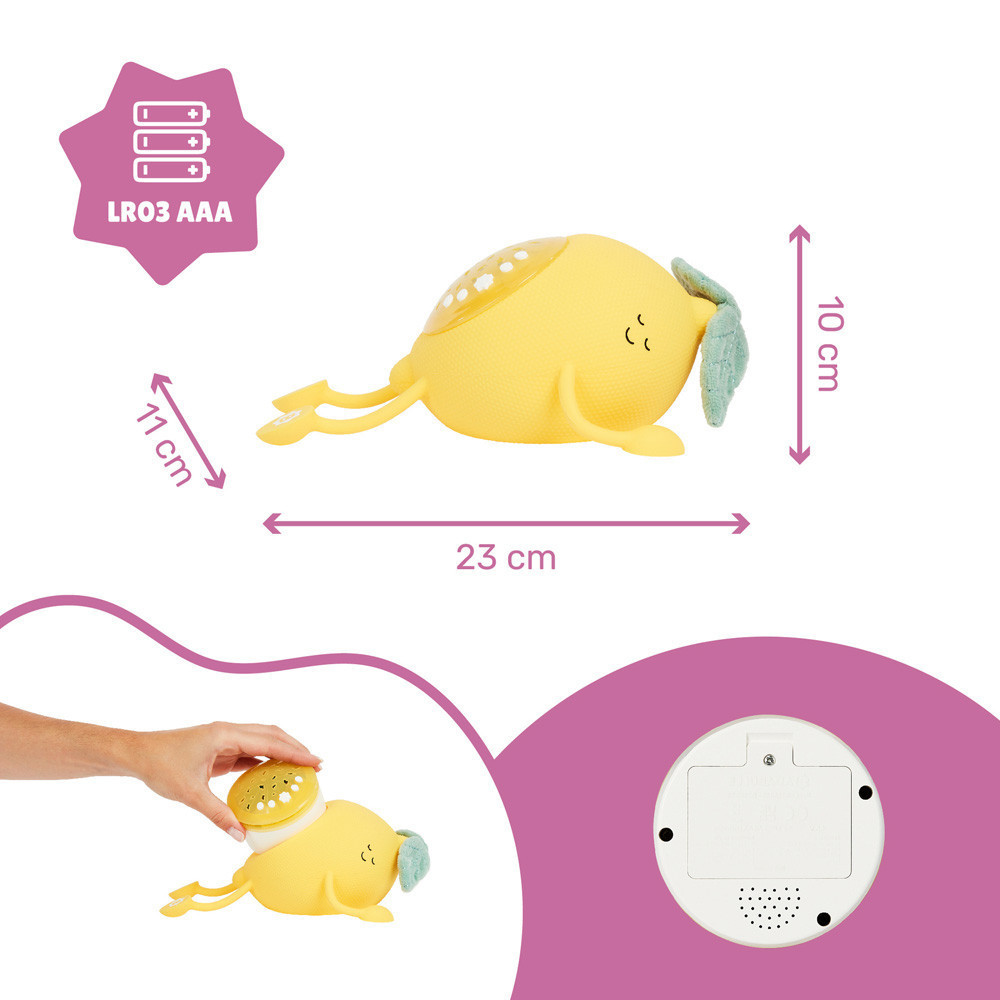 Nem tud csöppséged elaludni? Fél a sötétben? Akkor válaszd számára Basile-t, a cuki puha, citrom alakú, éjszakai lámpát, mely dallamaival az álmok világába repíti kisbabádat!