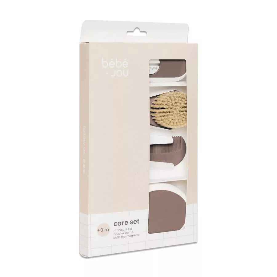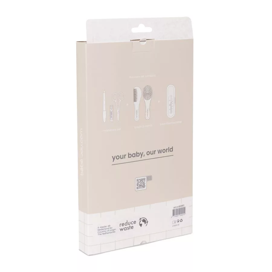 Ez az aranyos és praktikus Bébé-Jou ajándékszett minden újszülött és szülei számára ideális. A készlet tartalmaz természetes sörtéjű kefét, ergonomikus fésűt lekerekített fogakkal, manikűr szettet és egy vízhőmérőt a fürdetéshez.