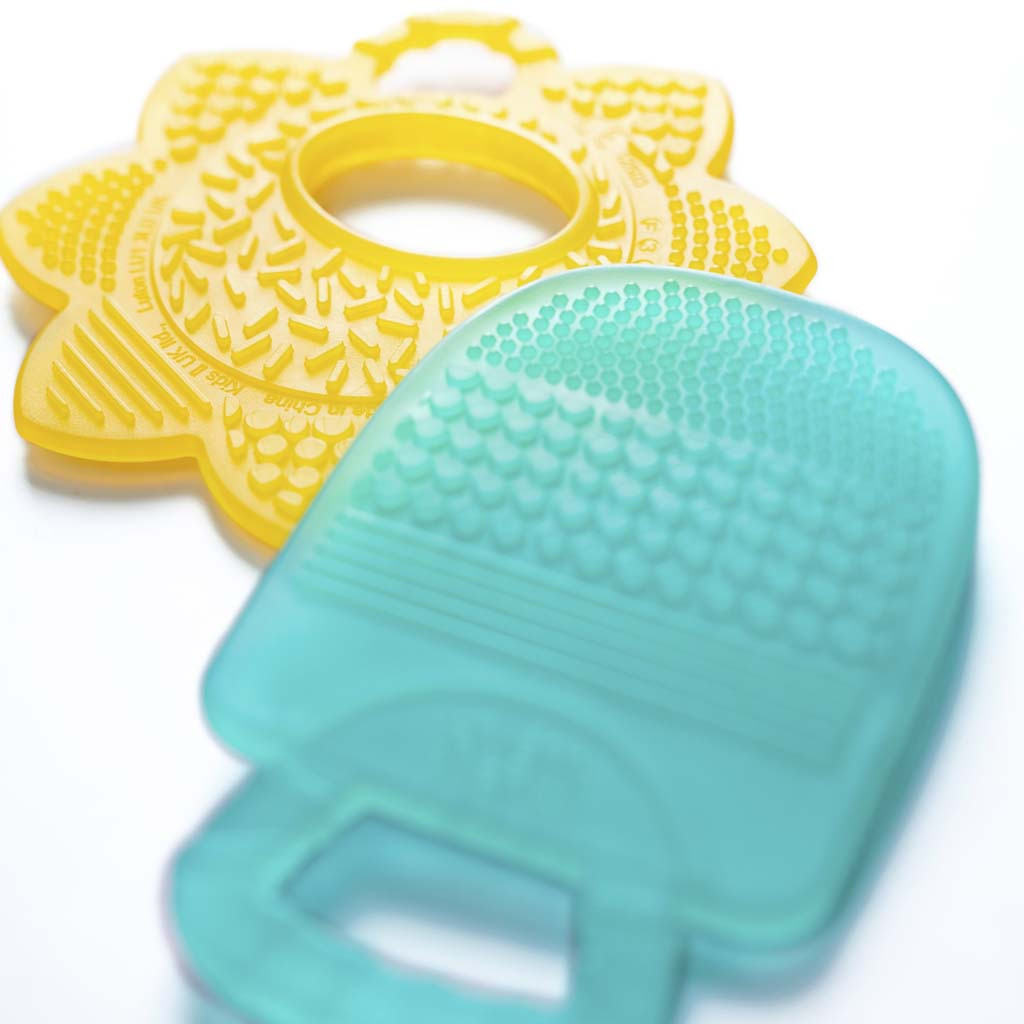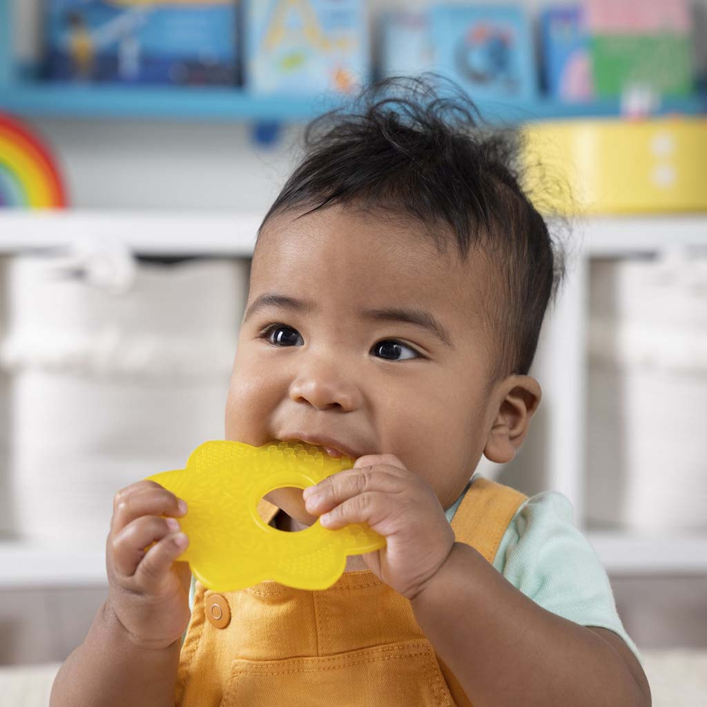 A fájó fogíny megnyugtatása sosem volt még ennyire egyszerű az új Bright Starts Sunny Soothers napocska és jégkrém formájú rágókáival. A sörtés kialakítás masszírozza kisbabád fogínyét, mikor megjelennek első fogacskái.