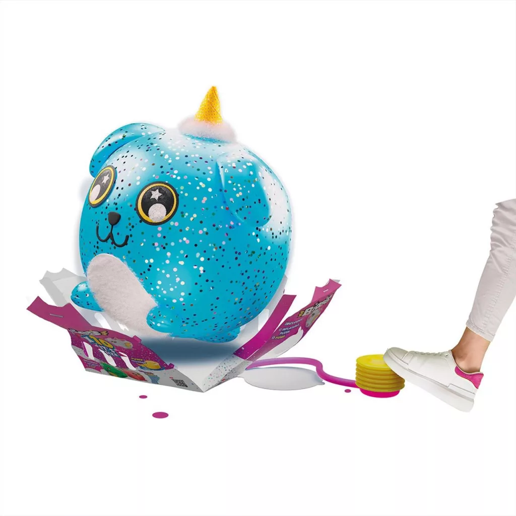 A Biggies felfújhatót plüssök 45 cm szélesre, 45 cm magasra és 45 cm mélyre híznak. Kedves, puha, összenyomható squishy barátok, melyet 4-10 éves gyerekeknek ajánlunk. A doboz tartalmaz egy pumpát is a plüss felfújásához.