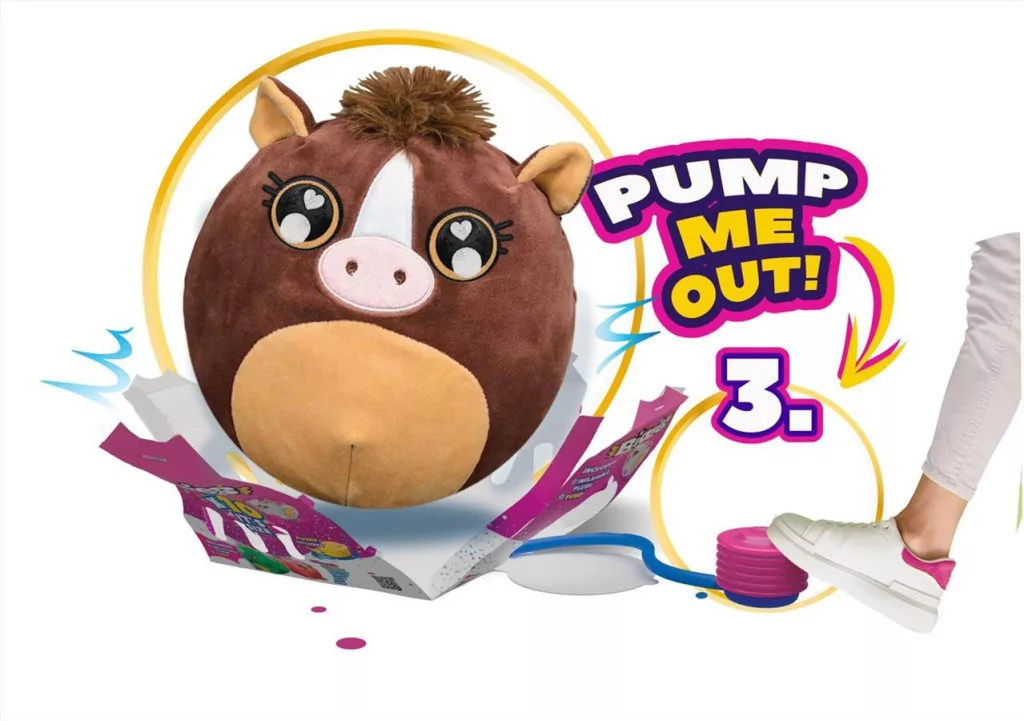 Nyisd le a csomagolás oldalát, majd használd a dobozban lévő pumpát, amíg olyan nagyra nem hízik vadiúj plüss barátod, hogy egyszer csak kibújik a dobozból! A Biggies felfújható plüssök kedves, puha, összenyomható squishy barátok, melyet 4-10 éves gyerekeknek ajánlunk. A cuki gömböcök 45 cm szélesre, 45 cm magasra és 45 cm mélyre duzzadnak. A doboz tartalmaz egy pumpát is a plüss felfújásához.