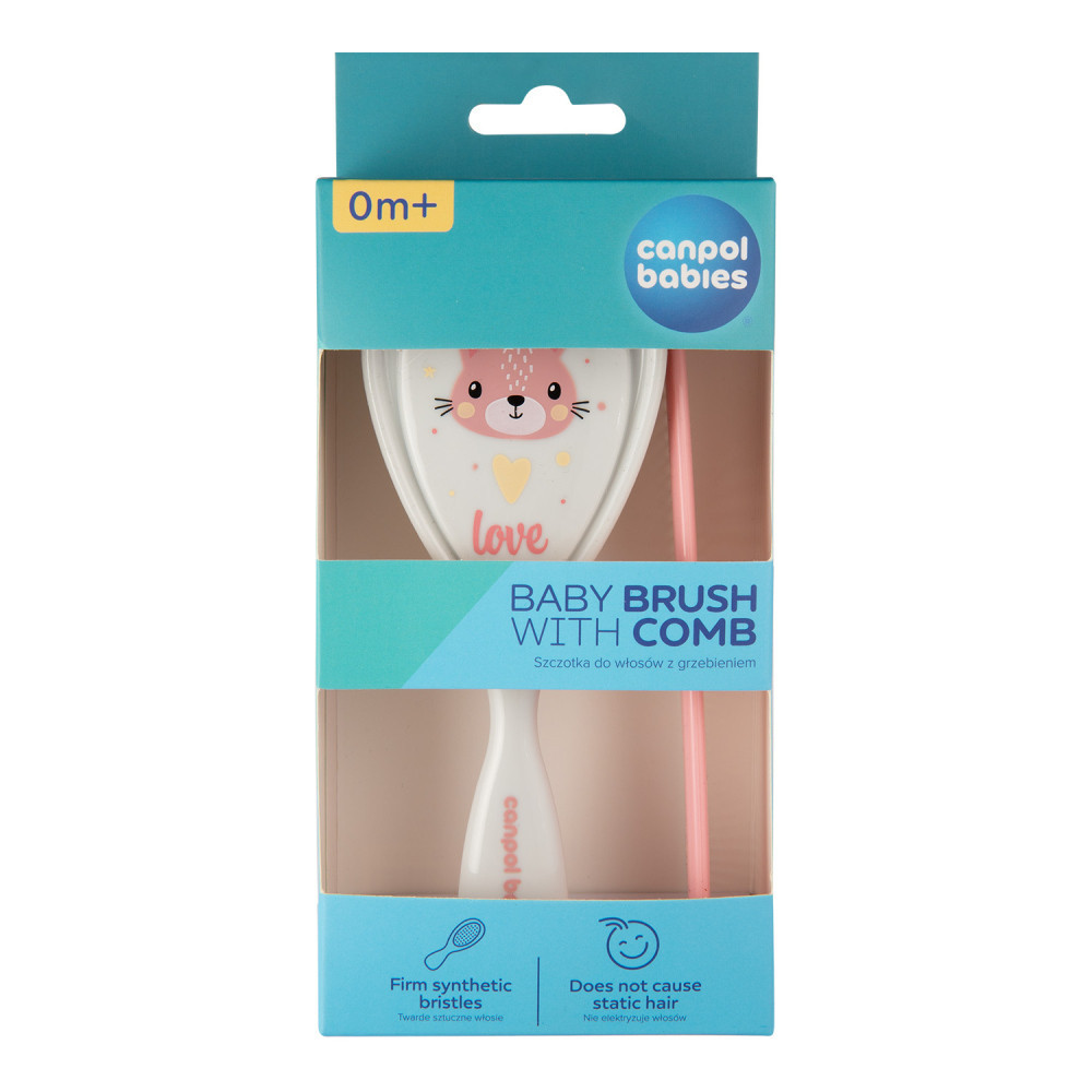 Canpol babies Baba kefe és fésű CUTE ANIMALS rózsaszín