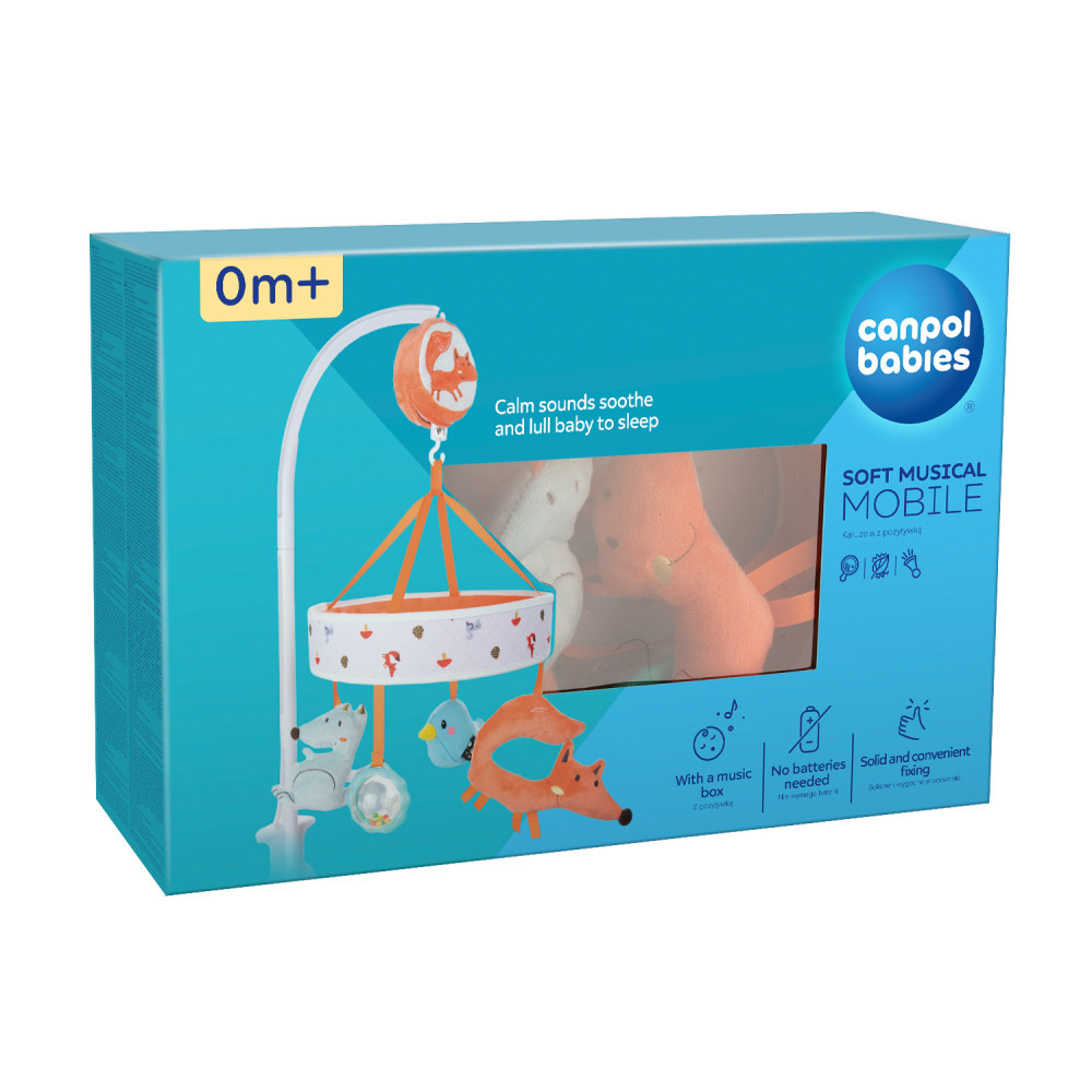 Húzd fel a Canpol babies kiságy fölötti, FOX zenélő forgót, amely nemcsak megnyugtatja, de fejleszti is újszülött babádat!