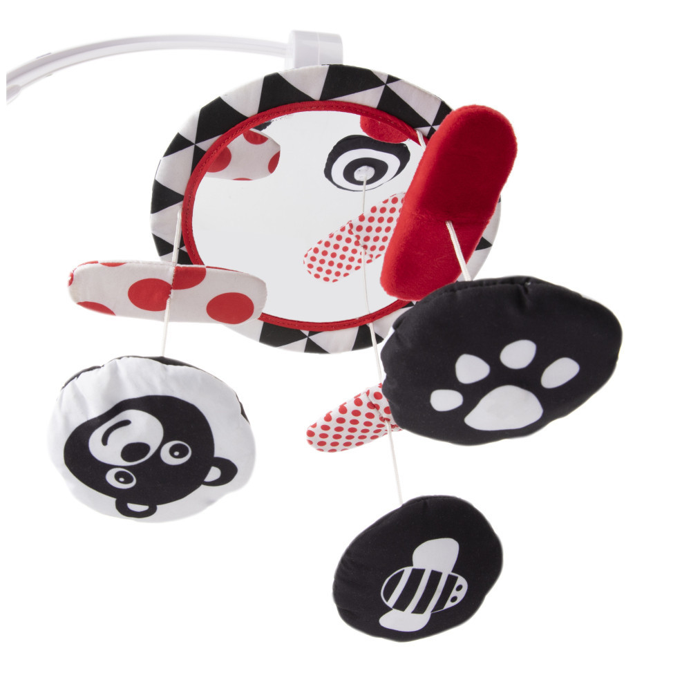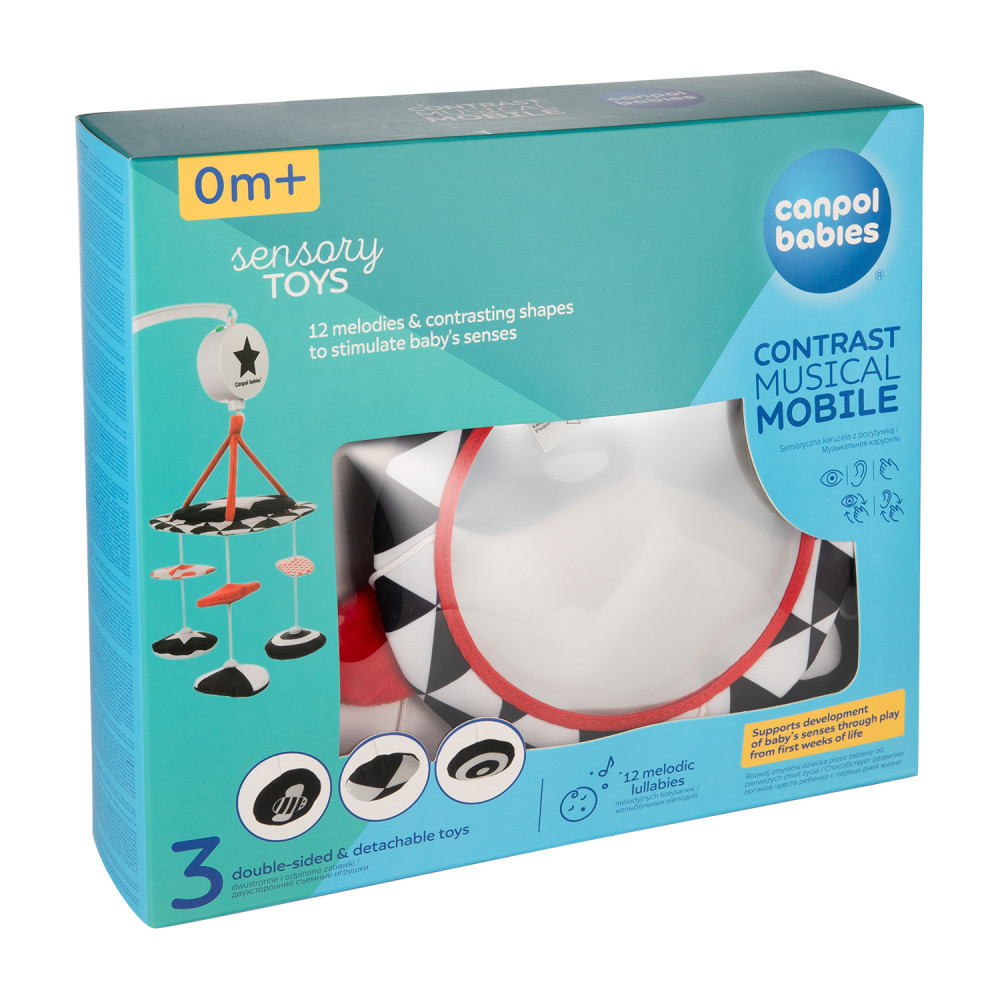 A Canpol babies kontrasztos, zenedobozzal ellátott, hordozható kiságyforgó interaktív elemekkel rendelkezik, amelyek hosszú ideig lekötik kisbabád figyelmét és mellette fejlesztik is őt.