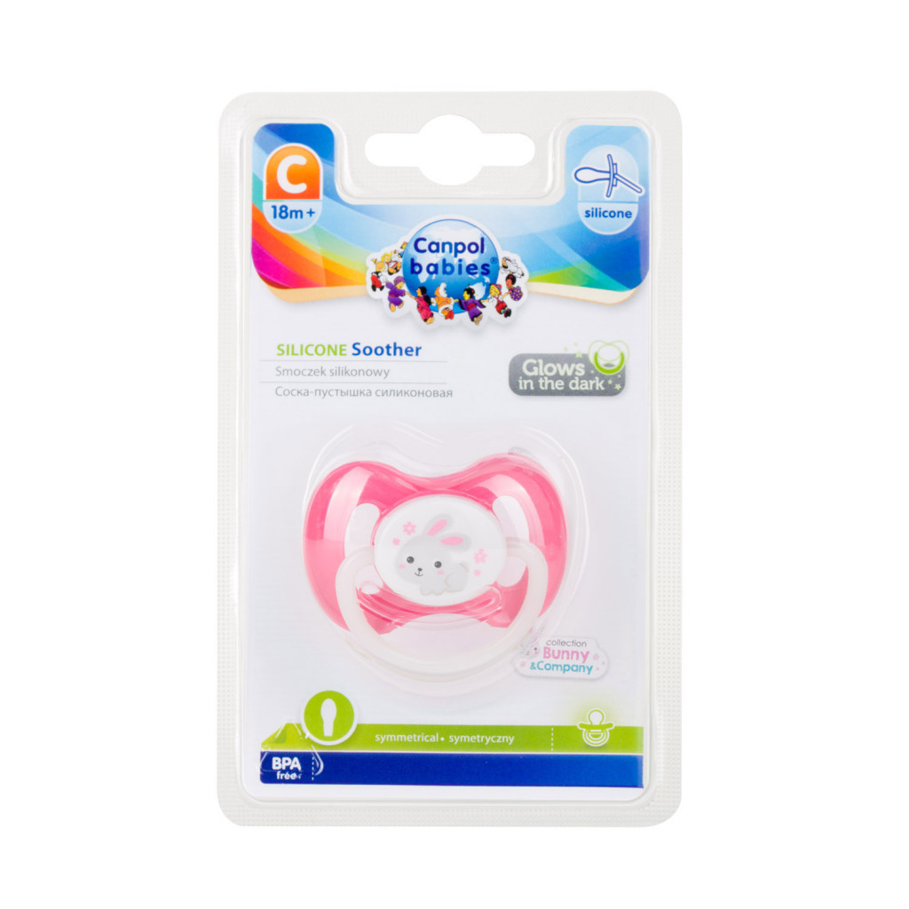 A Canpol babies, BUNNY&COMPANY cumi szimmetrikus végződése, a legjobb minőségű, szagtalan és íztelen szilikonból készült. Sötétben világító fogantyúja pedig segít, hogy éjjel könnyebben megtaláld.