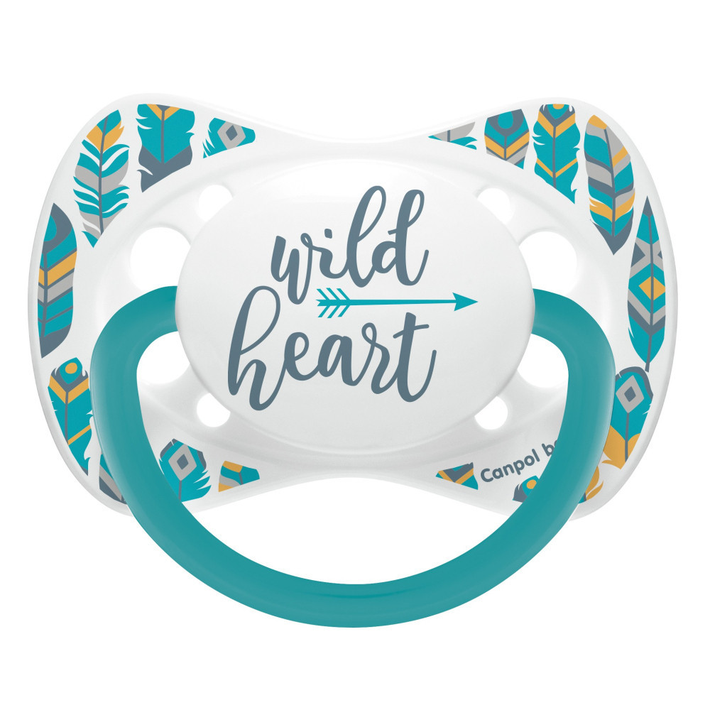 A Canpol babies TOYS szimmetrikus formájú szilikon cumi a WILD NATURE kollekció része. A pajzson lévő szellőzőnyílások biztosítják csöppségednek a szabad légzést és nyálnyelést.