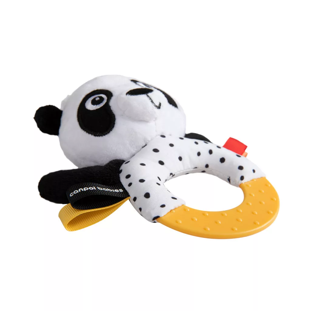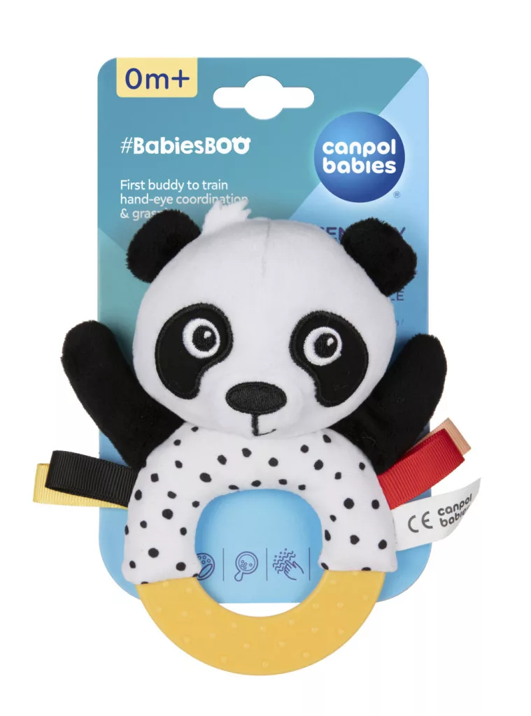 Az aranyos Canpol babies, szenzoros csörgő fejlesztőjáték, elvarázsolja kisbabádat és rögtön játékra ösztönzi őt. A játék, amellett, hogy fejleszti a finommotorikus készségét (fogás és rázás), aktiválja a hallás, a látás és a tapintás érzékét, valamint rágókaként - megnyugvást hoz a fogzás nehéz időszakában.