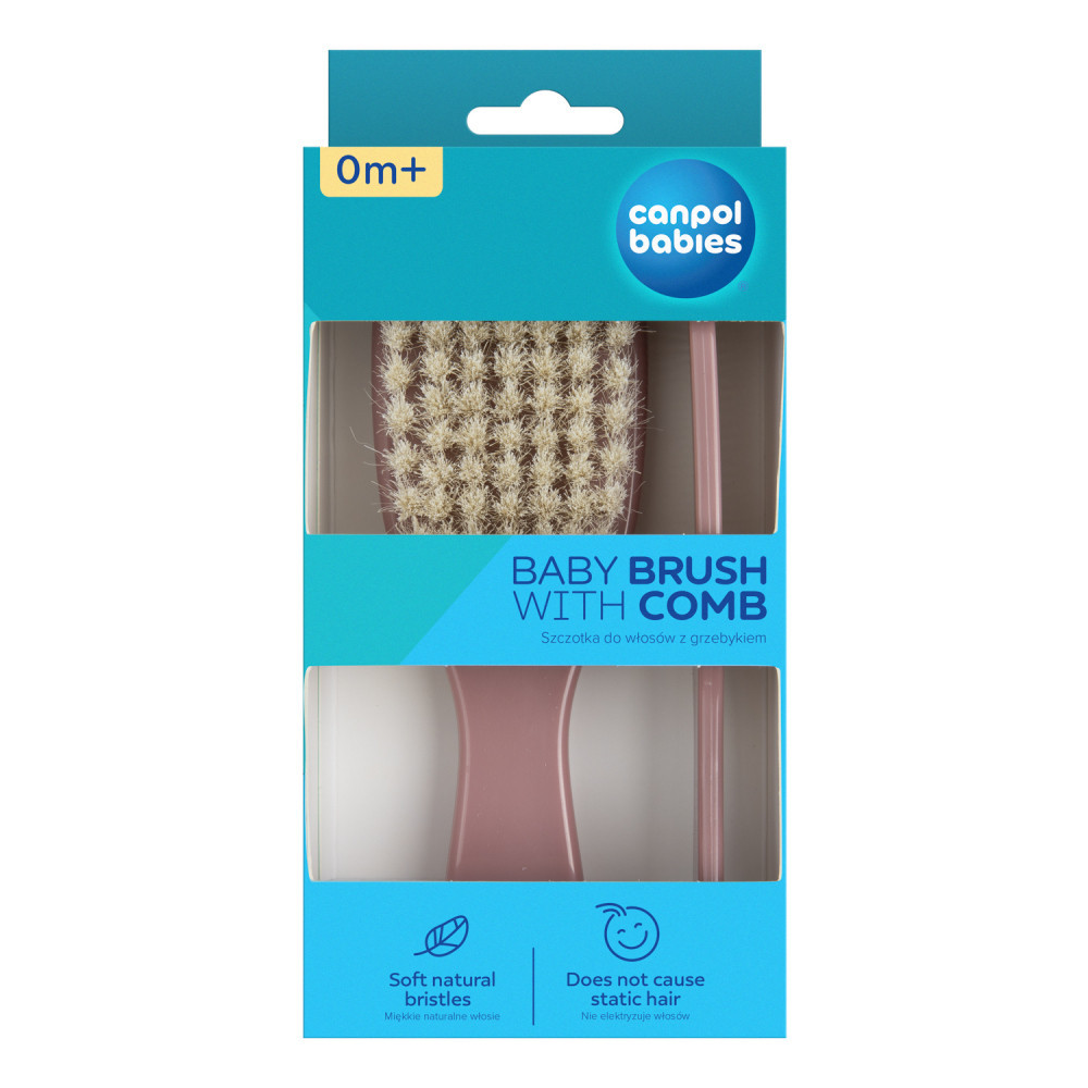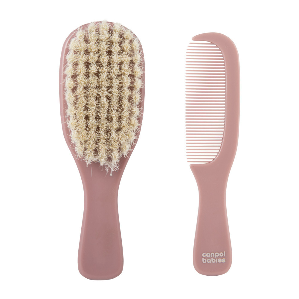 Canpol babies Természetes sörtés hajkefe és fésű GOLD - rózsaszín