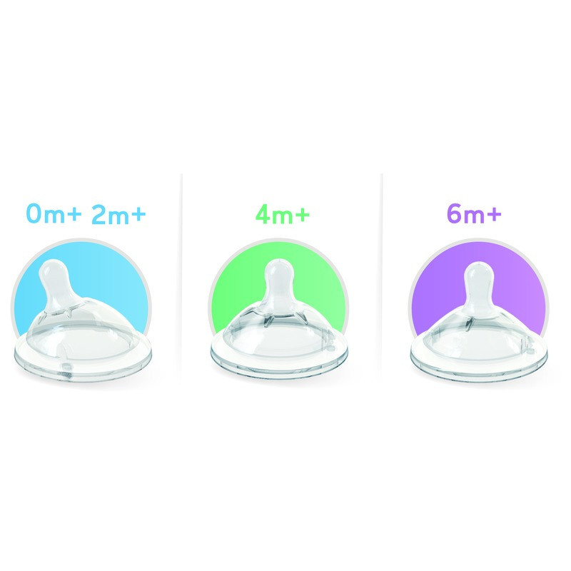 A Chicco változtatható folyású etetőcumijának lényege, hogy ahogy forgatod a cumisüveget, lassú-közepes-gyors folyást tudsz elérni, babád igényének és az ital/tápszer sűrűségének megfelelően.