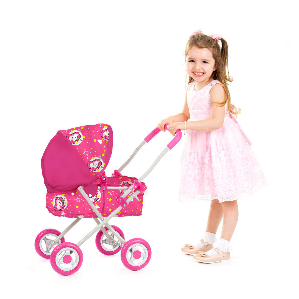 Kislányok nagy kedvence ez a játék babakocsi, amelyet mégpelenkázó táskával is kiegészített a gyártó.