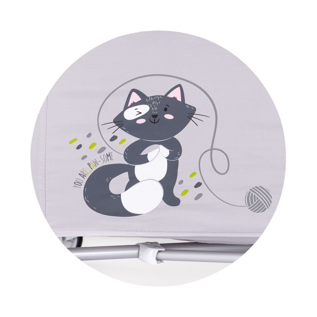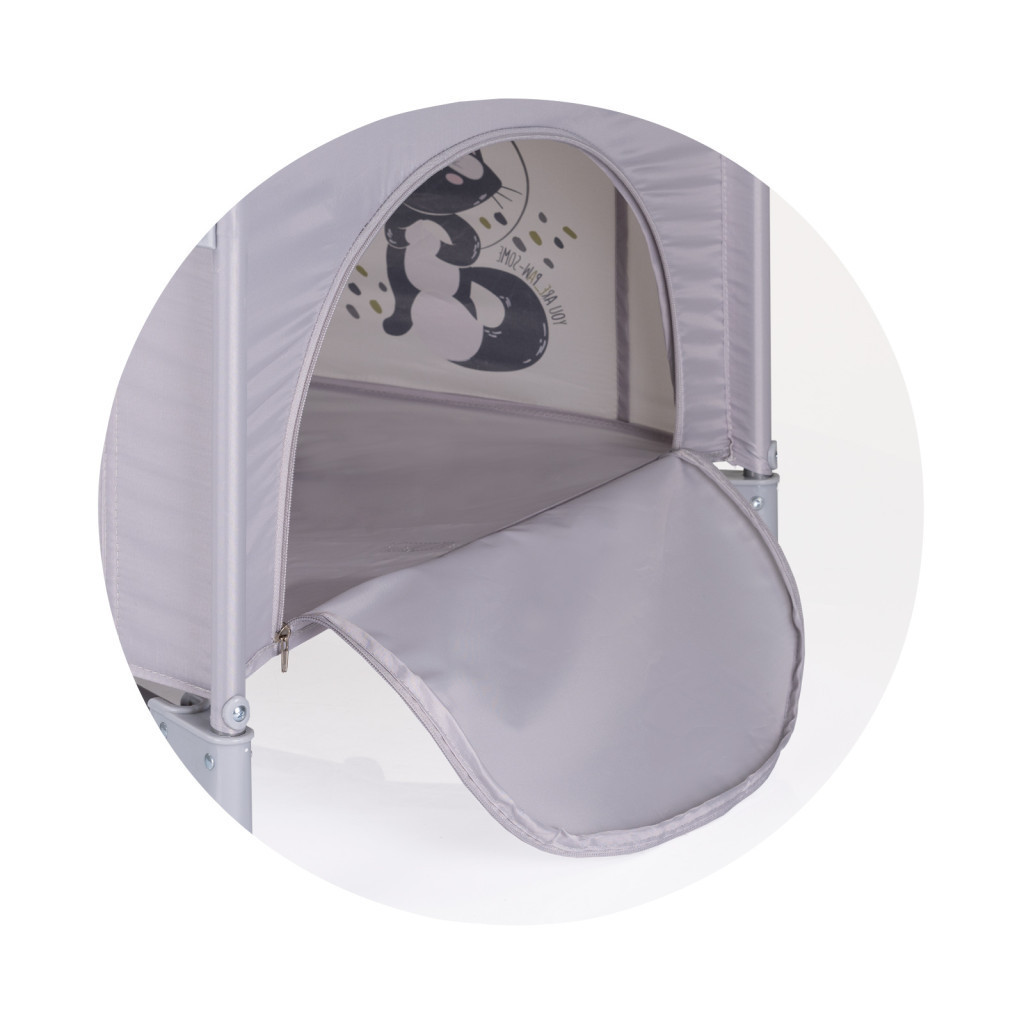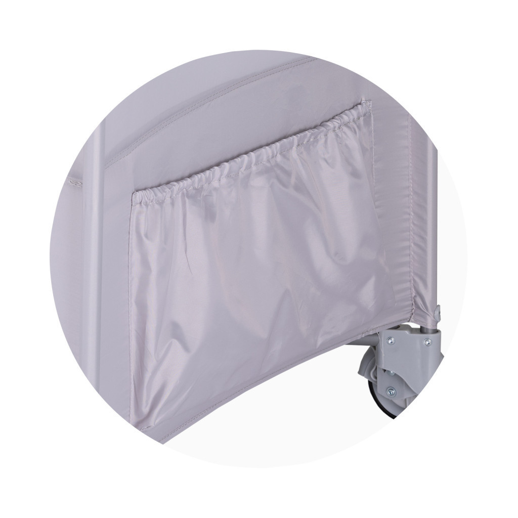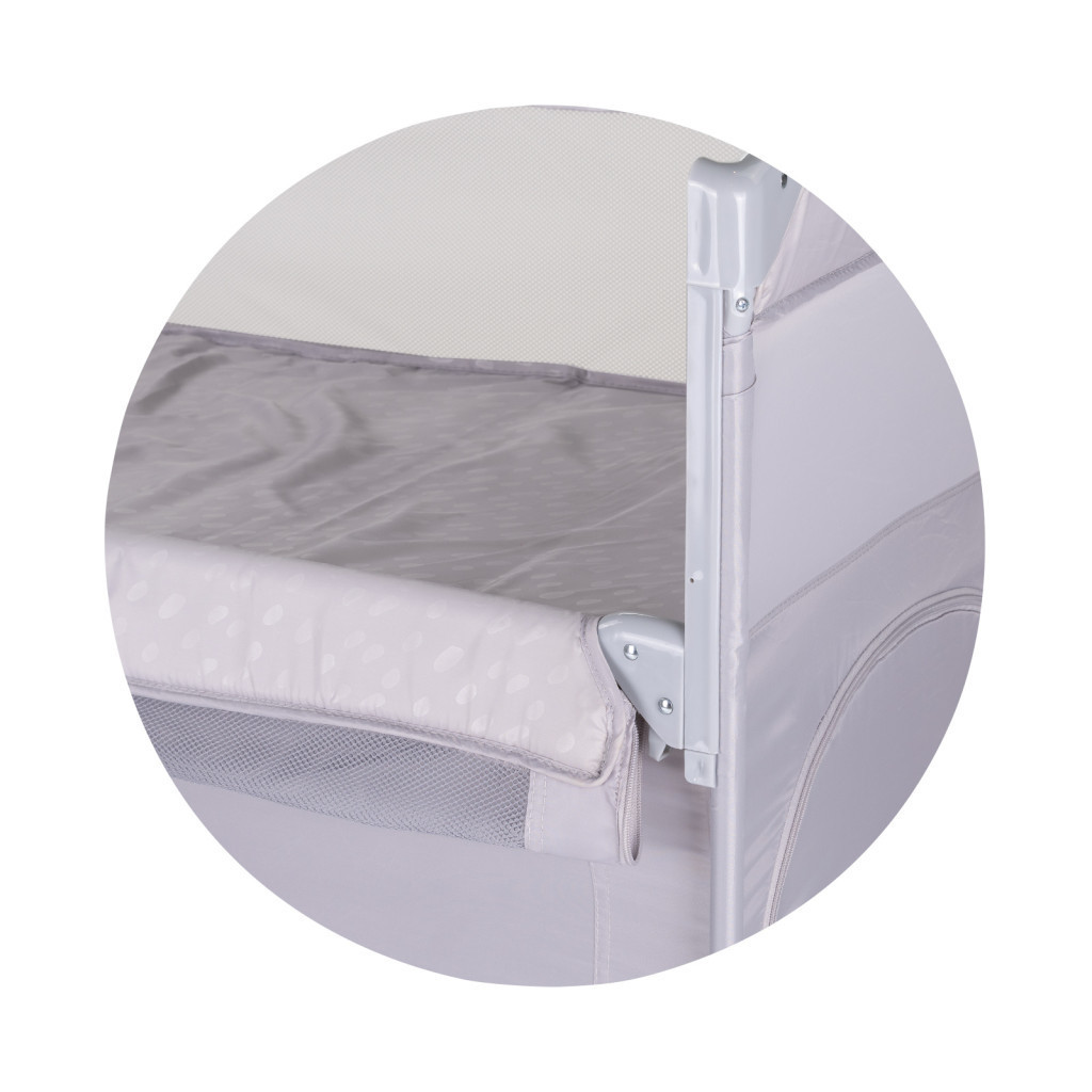 Több magasságban állítható oldala nagyon praktikussá teszi ezt az utazóágyat kisebb és nagyobb gyermekeknek is.