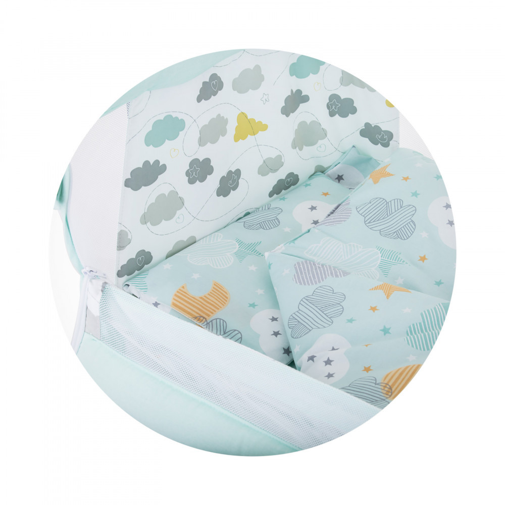 Puha ágynemű szett a Close To Me babaöbölhöz, mert a pihentető alváshoz elengedhetetlen a kényelem.