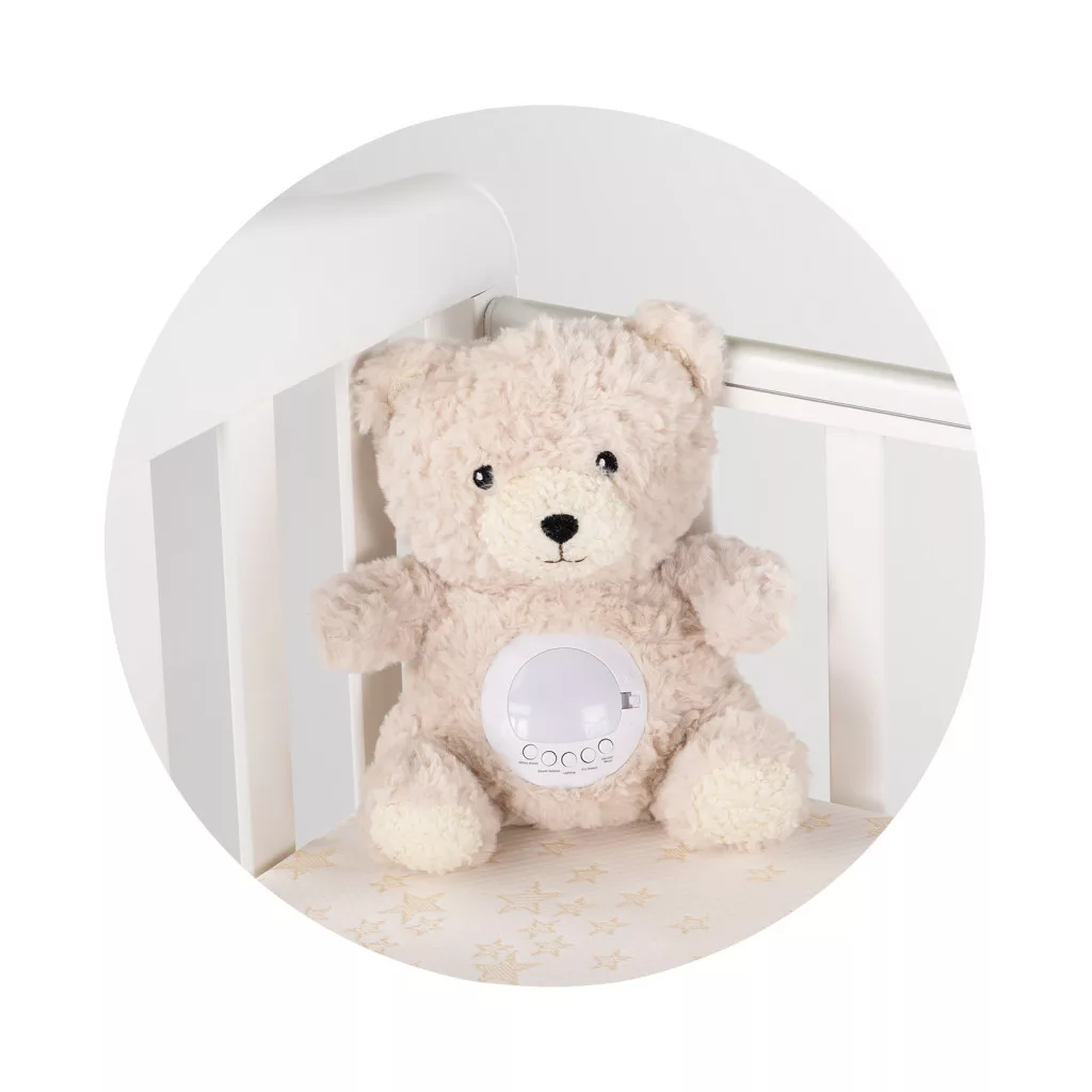 Kedves és nyugtató maci pajtás alváshoz. Beépített altató dallamokkal és fénnyel.