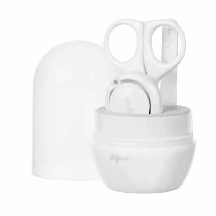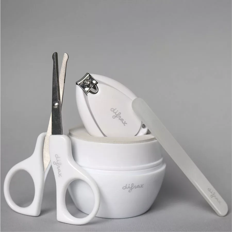 A Difrax manikűrkészlet kifejezetten a gyermekek körmeinek vágására és ápolására lett kifejlesztve. A készlet kerek hegyű ollóból, extra markolatú csipeszből és reszelőből áll. A Difrax manikűr megelőzi a bőrsérüléseket.