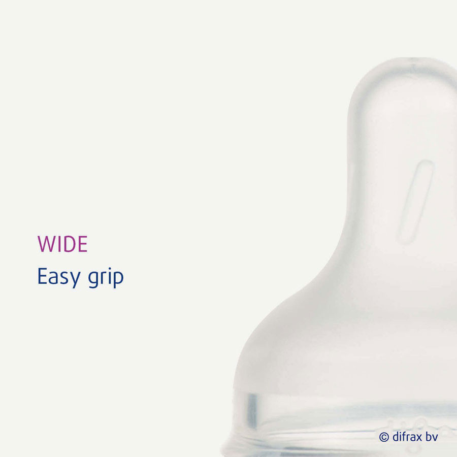 A Difrax Natural S széles szilikon cumi már születéstől alkalmas. Tejre, vagy teára alkalmas. A szilikon cumi a Difrax orvosi szakemberei tervezték és biztonságos, enyhén puha szilikonból készült, BPA használata nélkül.
