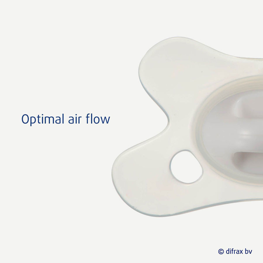 Az anatómiai kialakítású Difrax cumik teljes egészében megfelelnek a csecsemő szívási igényeinek. A szívóka alakja kerek és domború, a csecsemő számára édesanyja mellére hasonlít, így gyorsan hozzászokik a cumihoz. A cumi mérete és formája a Difrax orvosi szakértői által lett megtervezve és születéstől egészen 6 hónapos korig ajánlott.