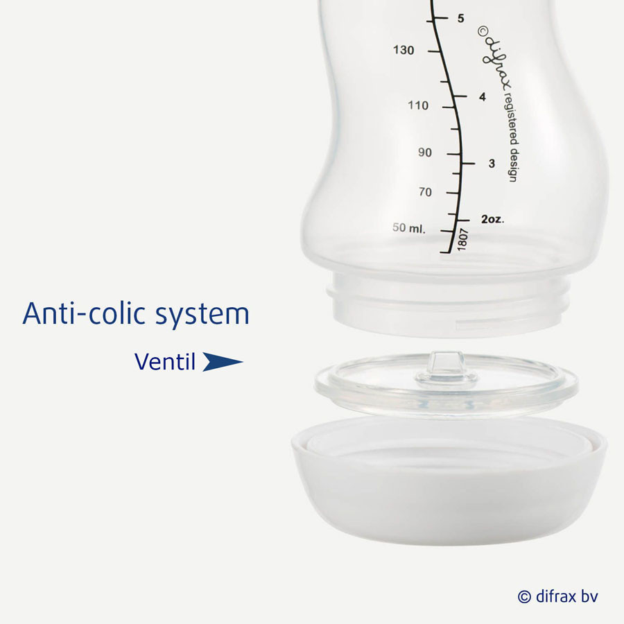 A Difrax anti-colic szelepek nélkülözhetetlen részét képezik a népszerű S alakú cumisüvegeknek. A Difrax szelep biztosítja a folyamatos, zavartalan táplálkozást és megakadályozza a gyomor- vagy bélgörcsök kialakulását, valamint a hányást.