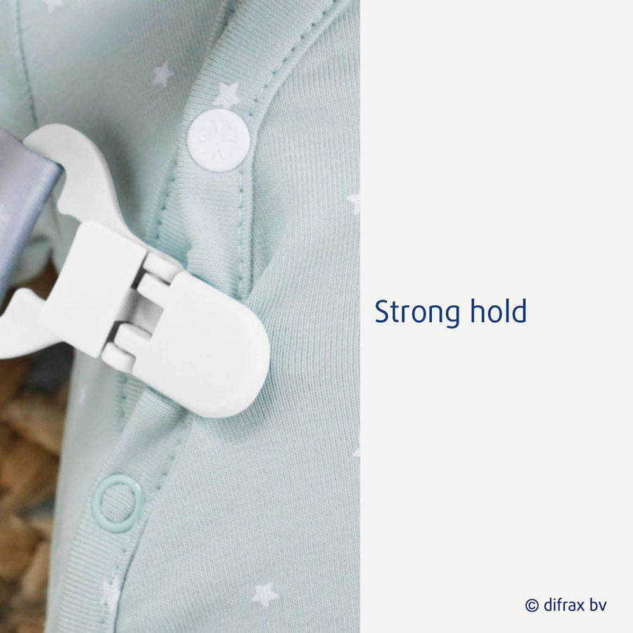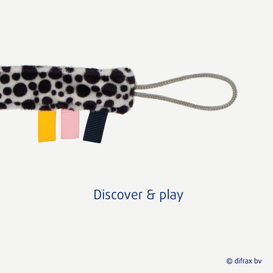 A Difrax plüss cumilánc praktikus megoldás, hogy a cumi mindig kéznél legyen, és ne vesszen el könnyen. Egyszerűen rögzíthető a cumihoz, a másik végét pedig a ruhához csattal kapcsolhatod, így a kicsi biztonságosan használhatja.