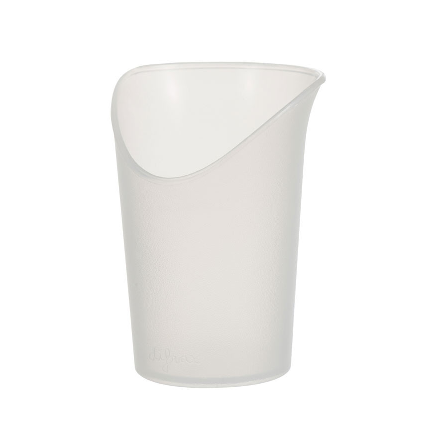 A Difrax tanuló bögre ideális eszköz, hogy megtanítsd a babát pohárból inni. A bögre oldalán található speciális orrkivágás segíti, hogy a kicsi a megfelelő fejhelyzetben igyon, így az ivás közben könnyebb a nyelés, és csökkenti a fulladás veszélyét.