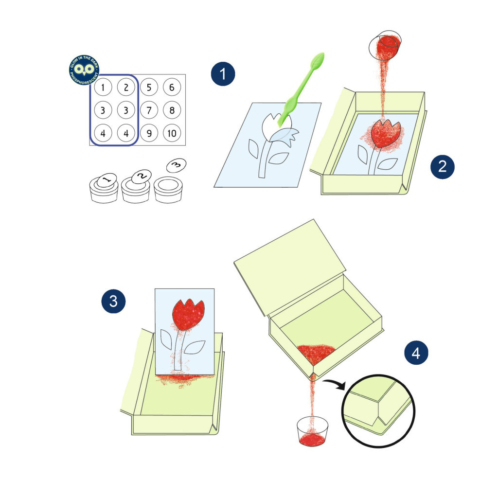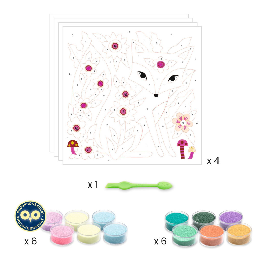 Merülj el a varázslatos éjszakai kert világában a Djeco "Kerti fények" homokkép készítő készlettel! Ez a készlet tökéletes választás a 5–8 éves korosztálynak, akik szeretnek alkotni és felfedezni a színek varázsát.