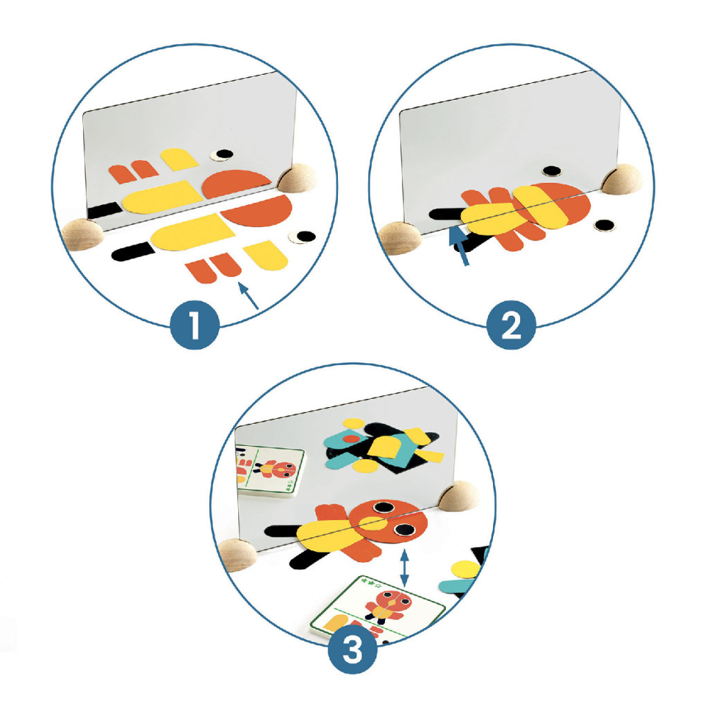 Képzeld el, hogy egy egyszerű pálca a tükörben egy egész állattá változik! A Djeco Ze Mirror Animals egy varázslatos tükröződős játék, ami a geometriai formák és a tükörképek segítségével hoz létre szórakoztató állatokat.