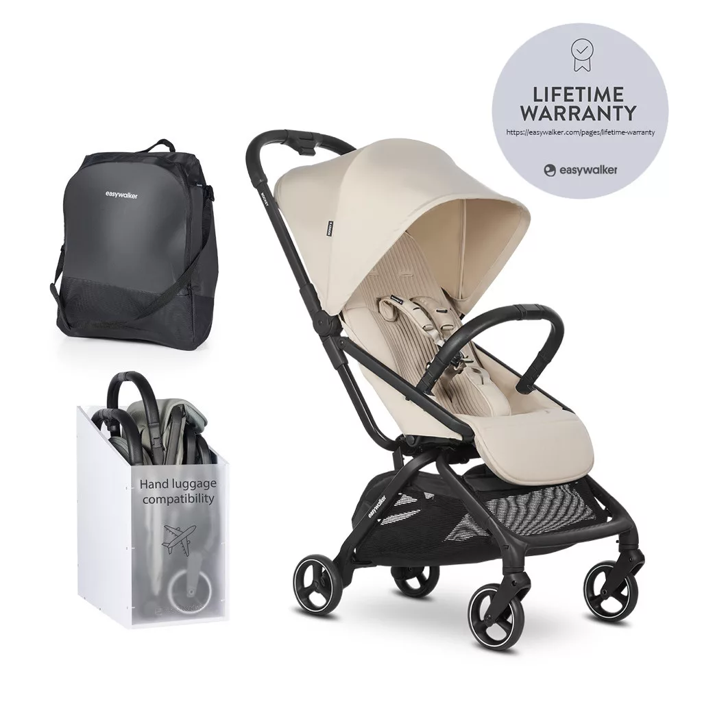 Az adapterekkel használható autósülések teljes listáját itt találja meg A Rockey S babakocsi műszaki paraméterei: - súly: 7 kg - kibontott babakocsi méretei: 105 × 45 × 85 cm - összecsukott babakocsi méretei: 55 × 45 × 20 cm - kosár teherbírása: 5 kg - kerék átmérője: 13 cm - babakocsi teherbírása: 22 kg FIGYELMEZTETÉS: A GYERMEK BIZTONSÁGA AZ ÖN FELELŐSSÉGE A gyermeket mindig be kell kötni, és nem szabad felügyelet nélkül hagyni. A gyermeknek a beállítások elvégzése közben távol kell tartózkodnia a mozgó részeitől (ellenkező esetben a gyermek megsérülhet). Ez a jármű rendszeres karbantartást igényel a felhasználó részéről. A túlterhelés, a helytelen összecsukás és a nem jóváhagyott tartozékok használata károsíthatja vagy tönkreteheti a járművet. Olvassa el a használati utasítást. FIGYELMEZTETÉS: Ez a termék csak 0 hónapos és 4 éves kor közötti gyermekek számára alkalmas, vagy legfeljebb 22 kg súlyig, attól függően, hogy melyik következik be előbb. FIGYELMEZTETÉS: Ez a termék nem alkalmas futásra vagy korcsolyázásra. FIGYELMEZTETÉS: Soha ne hagyja gyermekét felügyelet nélkül. FIGYELMEZTETÉS: Használat előtt győződjön meg arról, hogy minden reteszelőszerkezet be van-e kapcsolva. FIGYELMEZTETÉS: A gyermek be- és kirakodása során a parkolást biztosító szerkezetnek be kell kapcsolódnia. FIGYELMEZTETÉS: A tárolókosárban tárolható maximális terhelés: 5 kg. FIGYELMEZTETÉS: Ez a termék csak egy gyermek számára alkalmas. FIGYELMEZTETÉS: A gyártó által nem jóváhagyott tartozékok vagy cserealkatrészek nem használhatók. FIGYELMEZTETÉS: A kormányra és/vagy a háttámlára és/vagy a jármű oldalaira rögzített bármilyen teher befolyásolja a babakocsi stabilitását. FIGYELMEZTETÉS: Mindig használja az ülésen lévő rögzítőrendszert. FIGYELMEZTETÉS: Mindig használja az ágyékszíjat a derékszíjjal együtt, amikor gyermekét az ülésben szállítja. FIGYELMEZTETÉS: Amikor ezt a terméket újszülött csecsemője számára használja, mindig állítsa az ülést a leghátradőltebb helyzetbe. FIGYELMEZTETÉS: Használat előtt ellenőrizze, hogy a hordozóágy vagy az ülésegység rögzítő eszközei megfelelően be vannak-e kapcsolva. FIGYELMEZTETÉS: A gondatlanság tüzet okoz. FIGYELMEZTETÉS: A helytelen összecsukás/túlterhelés és a nem jóváhagyott tartozékok használata a termék eltörését vagy károsodását okozhatja. FIGYELMEZTETÉS: Amikor nincs használatban, tartsa ezt a műanyag borítást távol a gyermekektől a fulladás elkerülése érdekében. FIGYELMEZTETÉS: Ne hagyja, hogy gyermeke az Easywalker Rockey S babakocsival játsszon. FIGYELMEZTETÉS: A sérülések elkerülése érdekében gondoskodjon arról, hogy gyermekét távol tartsa a termék kibontásakor és összehajtásakor. FIGYELMEZTETÉS: Soha ne tegyen 13 kg-nál többet semmilyen autósülésbe, ha az a babakocsihoz van rögzítve.