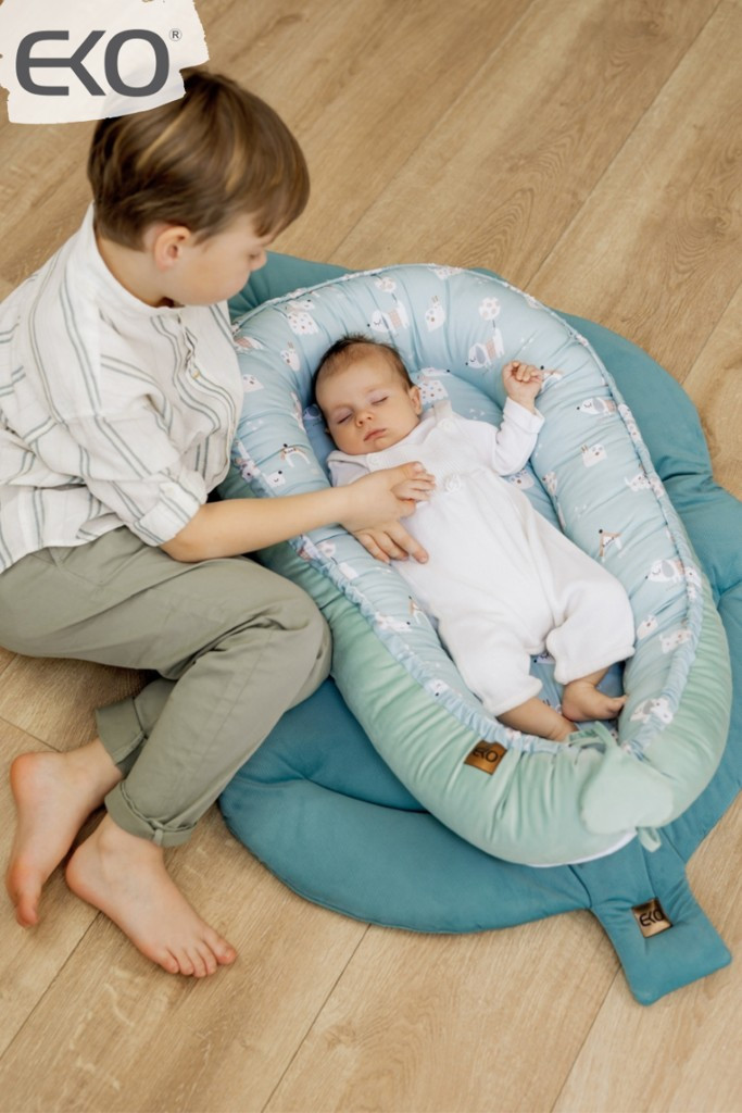 Ez a babafészek tökéletes választás, ha szeretnél egy meleg, ölelő kis fészket a babádnak – akár a kiságyba, a kanapéra, vagy utazáskor. A pamut belső gyengéd a baba bőréhez, a puha velvet külső pedig extra kényelmet nyújt.