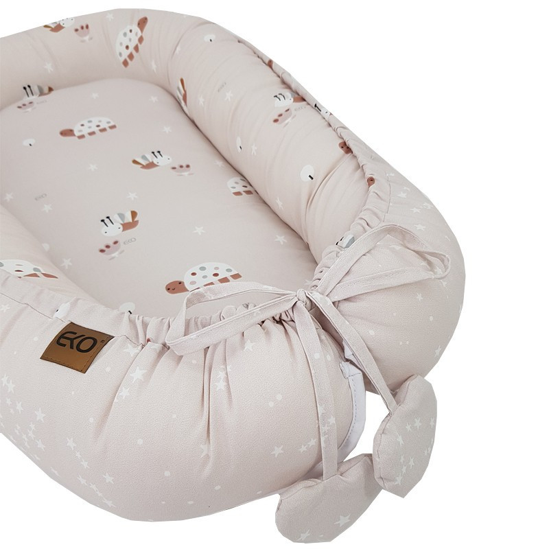 Egy biztonságos, puha kis kuckó, ahol a babád nyugodtan pihenhet – bárhol. Az EKO kétoldalas babafészek praktikus és stílusos választás: egyik oldalon vidám méhecskés, másikon bájos csillagos minta, így hangulattól vagy enteriőrtől függően bármikor megfordíthatod.