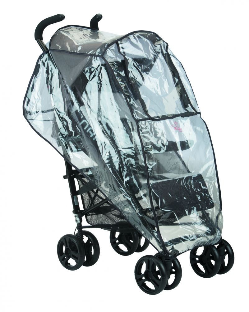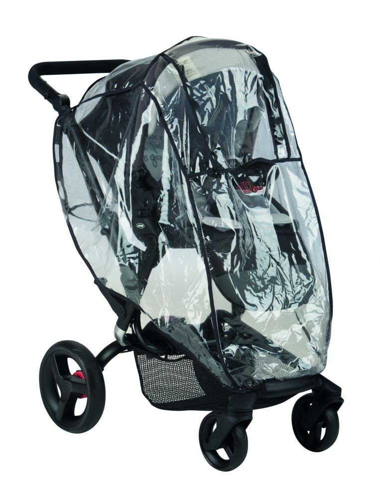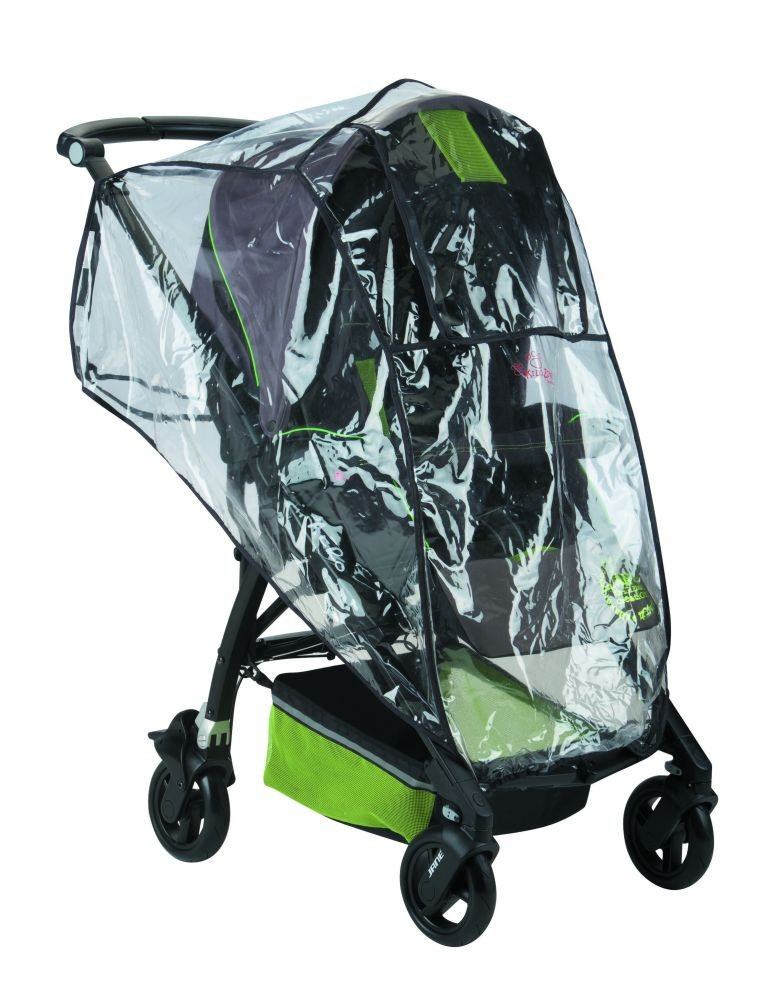 Nagy, átlátszó felülete segítségével a gyermek kiláthat a babakocsiból, nem lesz nyomasztó számára, hogy "le van fedve". A babakocsi teljes területét védi az esőcseppek elől.