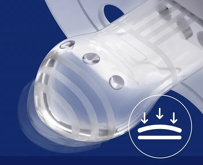 A LOVI Dinamikus nyugtató cumi® neurológusok és logopédusok közreműködésével lett kifejlesztve. Egyedi heterogén szilikonrétegekből álló szimmetrikus kialakítása a mellbimbó formáját követi, hogy ne zavarja meg a baba természetes szopóreflexét, és elősegítse a beszéd- és harapásfejlődést.