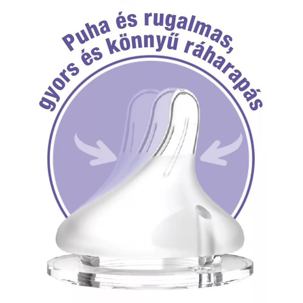 A baba nyelvét hullámszerű mozgásra ösztönzi a száj és állkapocs természetes fejlődéséért. Segít fenntartani a bevált szopási módot. Könnyű váltást biztosít a szoptatásról a cumisüvegre és vissza.
