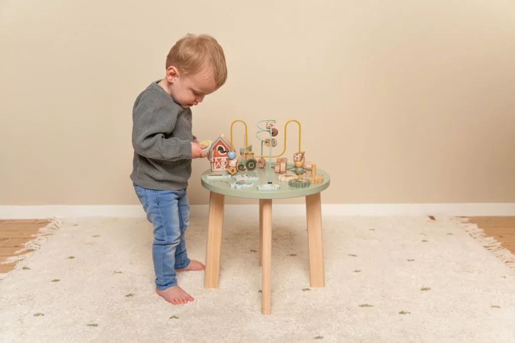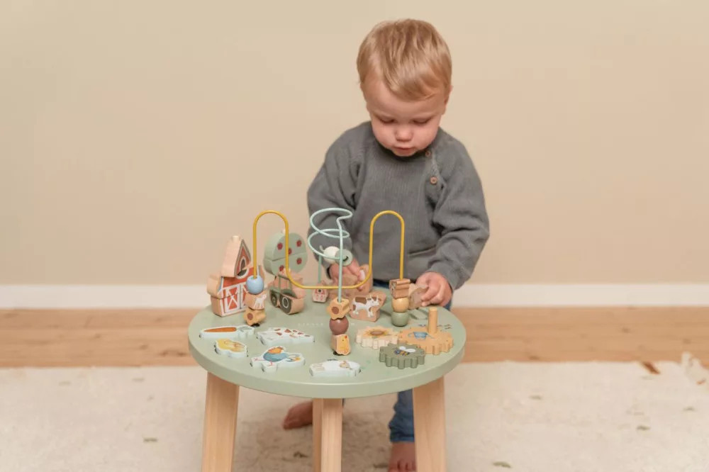 Ez nem csak egy asztal – ez egy egész mesevilág! A Little Dutch activity asztal tele van felfedeznivalóval: gyöngyök, csúszkák, forgók és formabedobók, amik mind fejlesztik a finommotorikát és lekötik a kíváncsi kis kezeket.