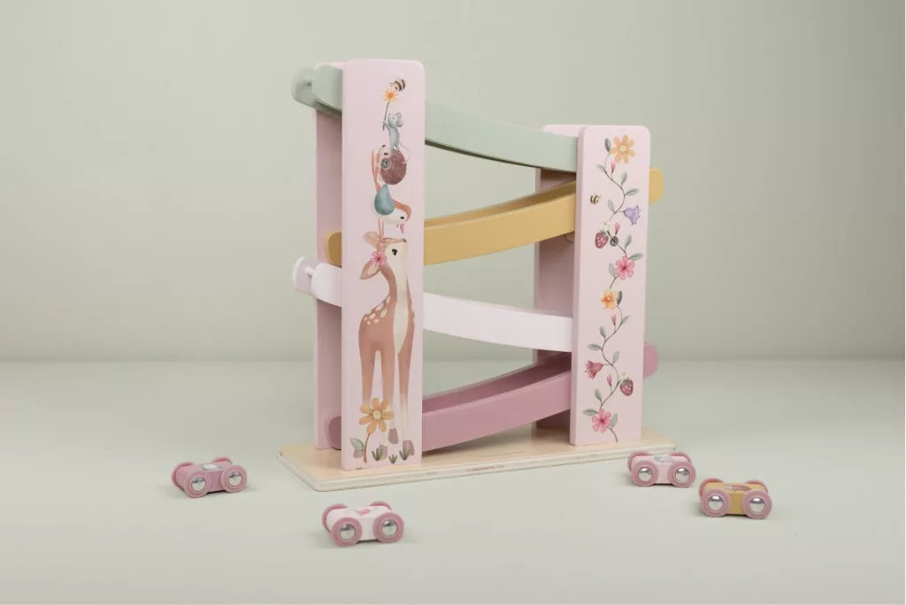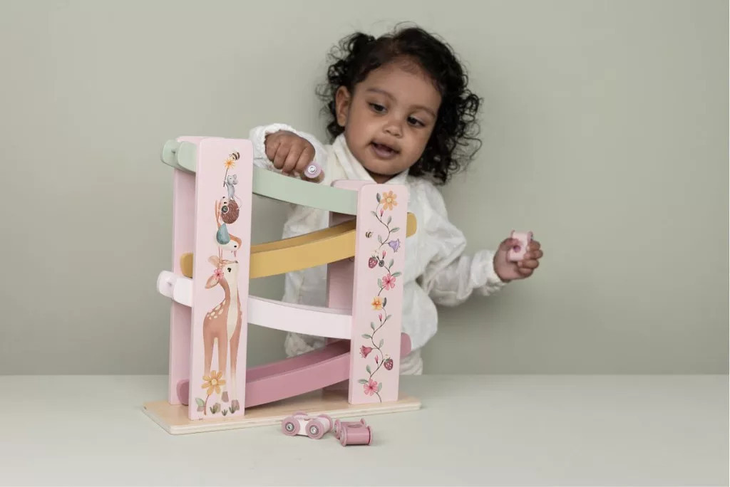 Ez a szuper aranyos autópálya garantáltan leköti a kicsiket! Csak tedd fel az autót a tetejére, és figyeld, ahogy száguld lefelé a pályán – újra és újra!