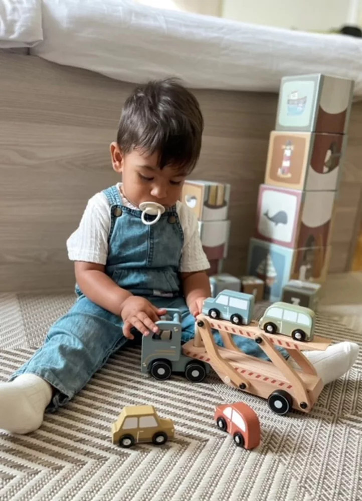 Ez a fából készült autószállító kamion nemcsak menő jármű, hanem egyben szuper fejlesztő játék is! Gyermeked imádni fogja fel- és lepakolni a kisautókat, gurítani a kamiont, és persze újra meg újra indulni a "szállítmánnyal".