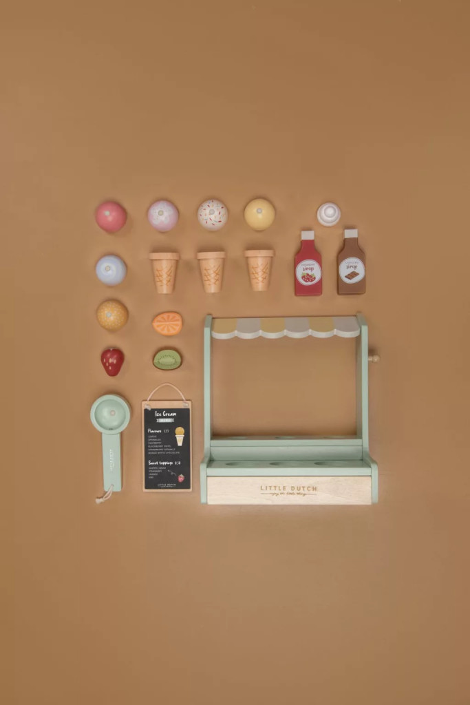 A Little Dutch fagyizó minden kis cukrász álma! A fából készült, gyönyörűen kidolgozott szett lehetővé teszi, hogy a gyerekek különféle fagylaltokat készítsenek, kínáljanak, eladjanak – így nemcsak szórakoznak, hanem játék közben fejlődik kreativitásuk, kézügyességük és szerepjáték-készségük is.