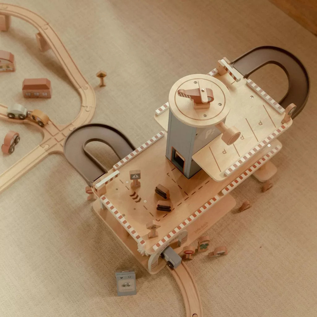 Parkolj, tankolj, és indulhat a száguldás! A Little Dutch fa parkolóház minden kis autórajongó álma, és tökéletes kiegészítője a Little Dutch fa sínpálya XL készletnek.