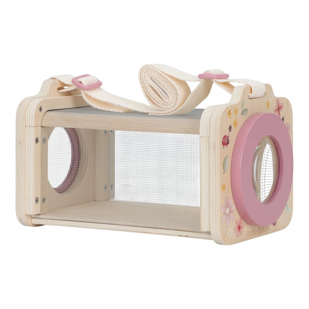 A doboz tetején található nagyítóval ellátott fedél segítségével a gyerekek részletesen megvizsgálhatják a rovarokat – például a pillangók szárnyait vagy a hangyák apró mozgását. A dobozt a kedves Fairy Garden minták díszítik, amelyek még varázslatosabbá teszik a természet felfedezését.