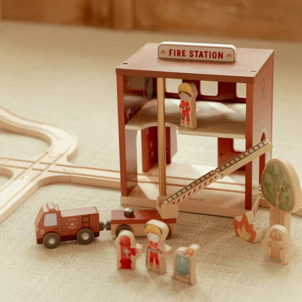 Ez a Little Dutch fa tűzoltóállomás minden kis hős számára izgalmas kalandokat tartogat. Nyisd ki a kapukat, csússz le a tűzoltó rúdon, és pattanj be a létrás tűzoltóautóba!