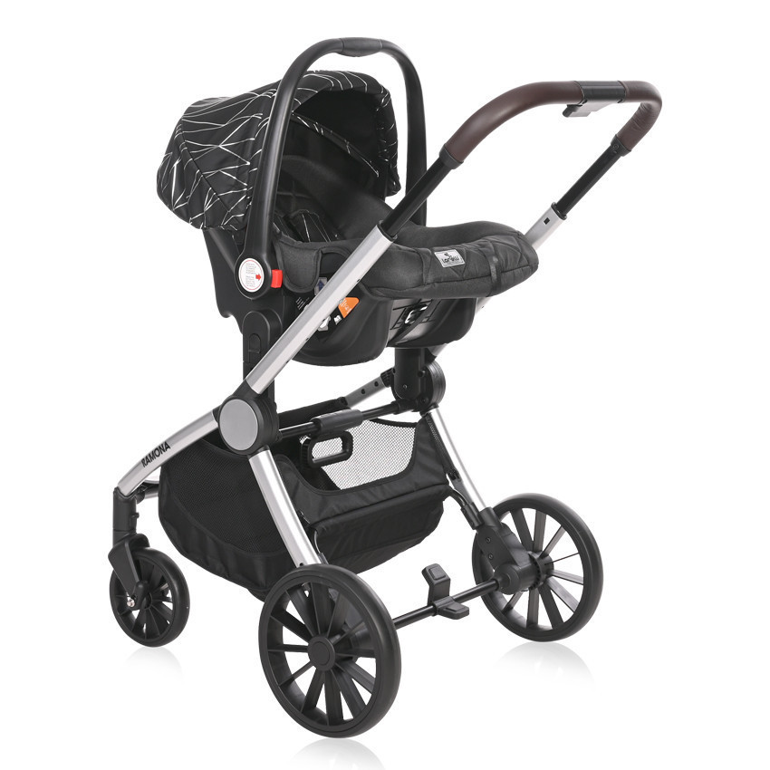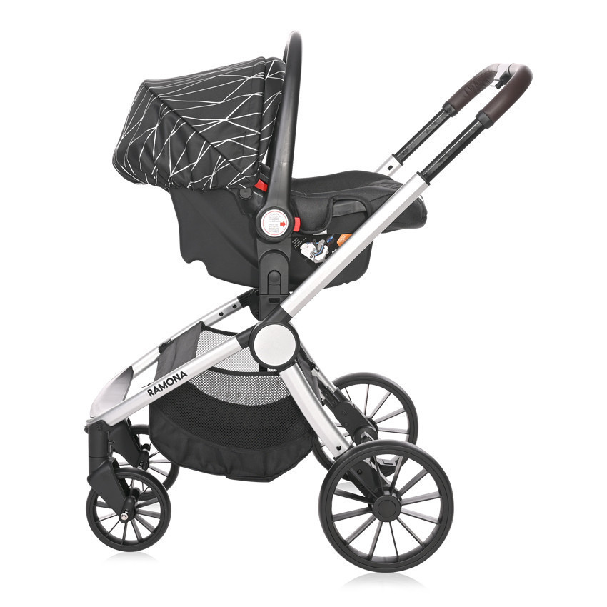Az anyagában és színében passzoló autóshordozó egyszerűen csatlakoztatható a vázra, mely a gyermek 13 kg-os testsúlyáig, kb. 1,5 éves korig használható, melyet az autó 3 pontos biztonsági övével köthetünk be az autóba.